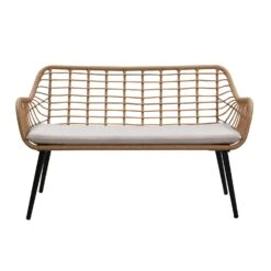 De COCOON Lounge bank Natural is een prachtige en moderne tuinbank die perfect is voor ontspanning in de buitenlucht. Het zwart metalen frame van de bank is sterk en duurzaam, terwijl het gevlochten hoogwaardig wicker in de kleur naturel zorgt voor een eigentijdse uitstraling en een natuurlijk gevoel. Met afmetingen van B 128 x D 68 x H 78 cm biedt de bank voldoende ruimte en comfort voor ontspanning en gezelligheid met vrienden en familie. De COCOON Lounge bank Natural sluit mooi aan bij de andere producten uit de COCOON-serie en is een aanwinst voor elke moderne buitenruimte.