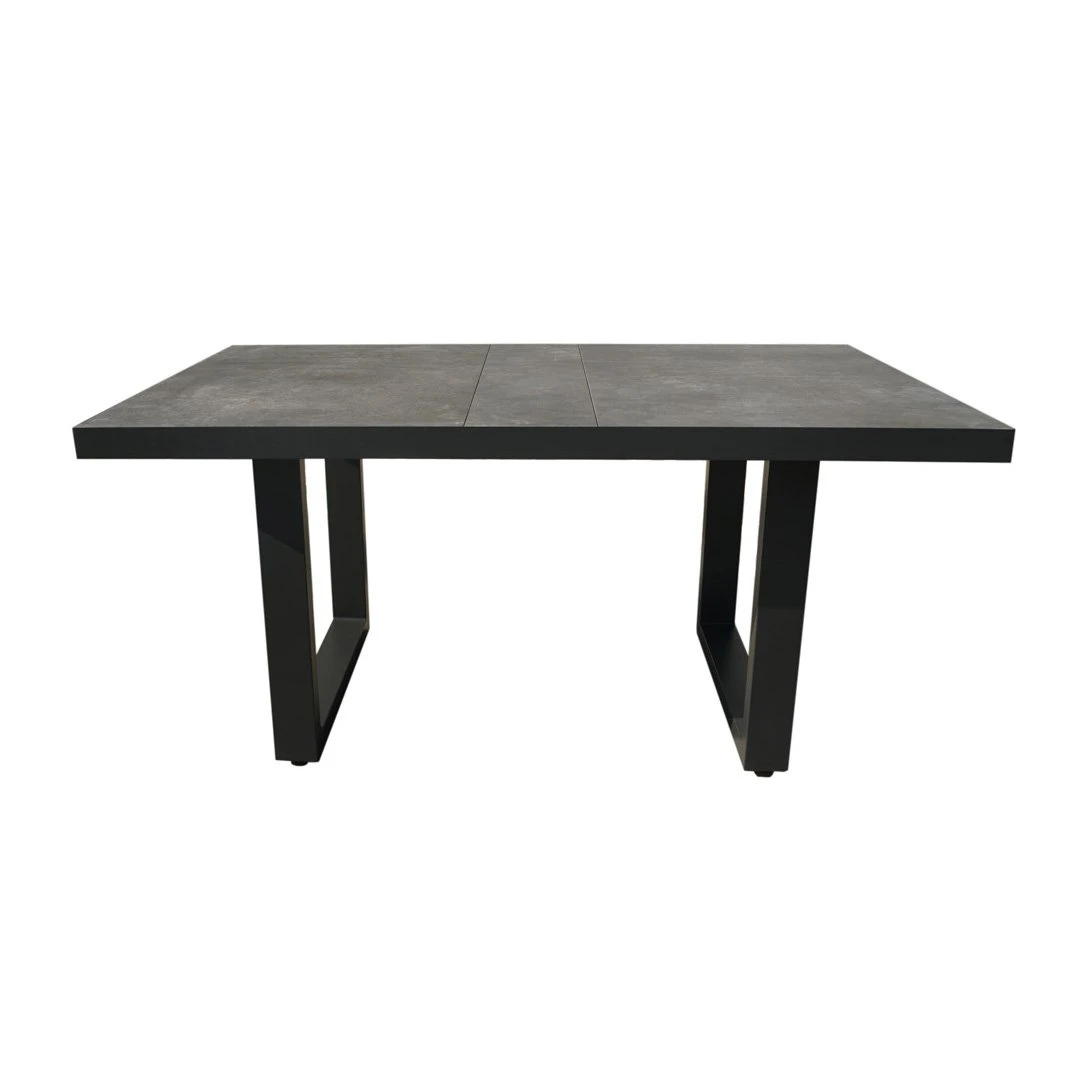 De SOL โhigh diningโ tuintafel is 65cm hoog. Dit is een perfecte hoogte om comfortabel te lunchen of dineren. Het frame is gemaakt van aluminium. Het tafelblad is van keramiek en heeft een mooie steenlook.