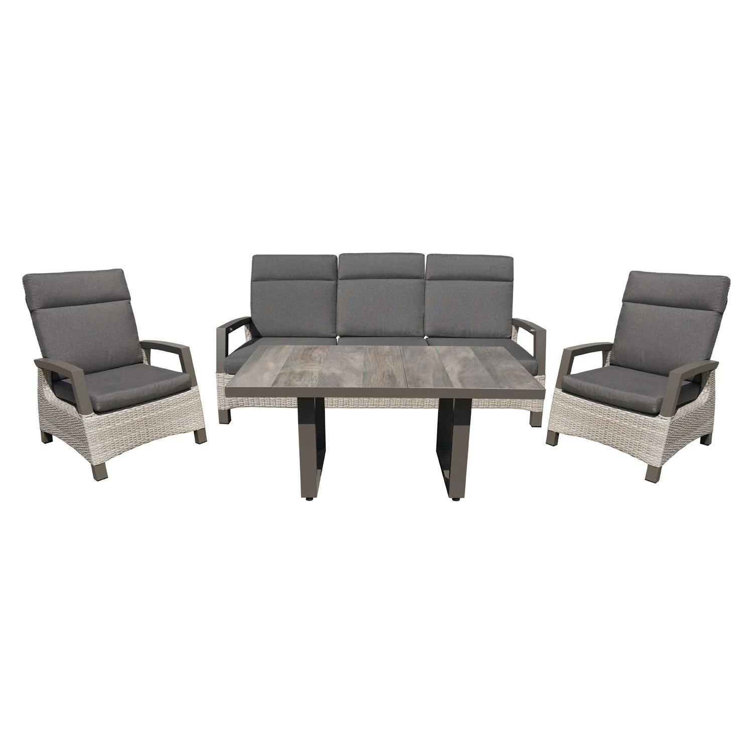- De ‘High dining’ tafel maakt deze tuinset tot een loungeset en diningset in één